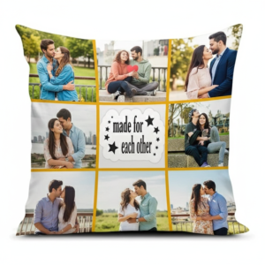 Customized 8-Photo Collage Cushion – “Made for Each Other” Printed Pillow – Romantic Valentine’s & Anniversary Gift for Couples – Square Personalized Gift