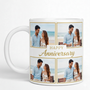 Personalized “Happy Anniversary” Photo Collage Mug – Custom Ceramic Coffee Mug with 4 Photos – Romantic Anniversary Gift for Husband/Wife