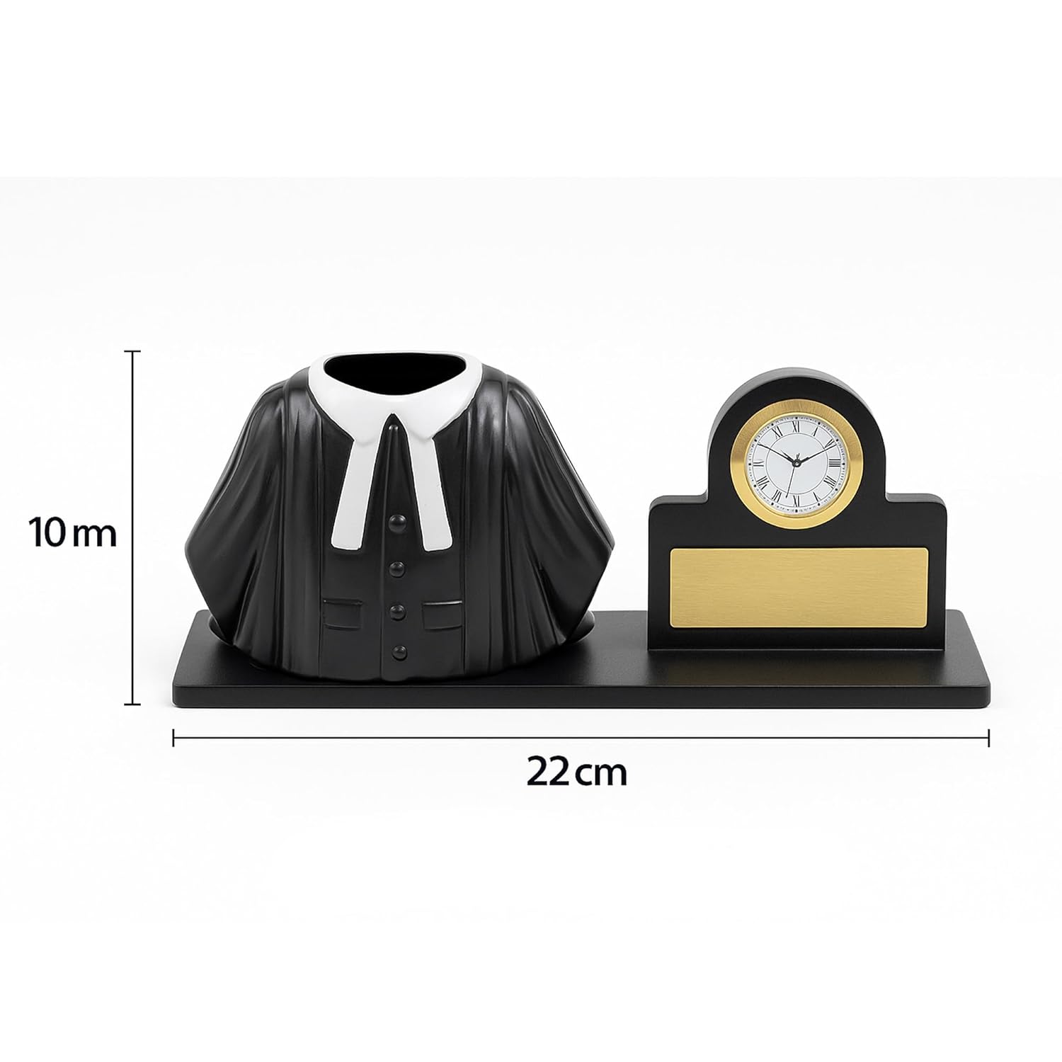 The Personalized Advocate Coat Pen Stand is a creative and premium-quality desk accessory designed especially for advocates, lawyers, and LLB students. It’s shaped like a classic black lawyer’s coat and robe — a true symbol of honor and professionalism in the legal world.